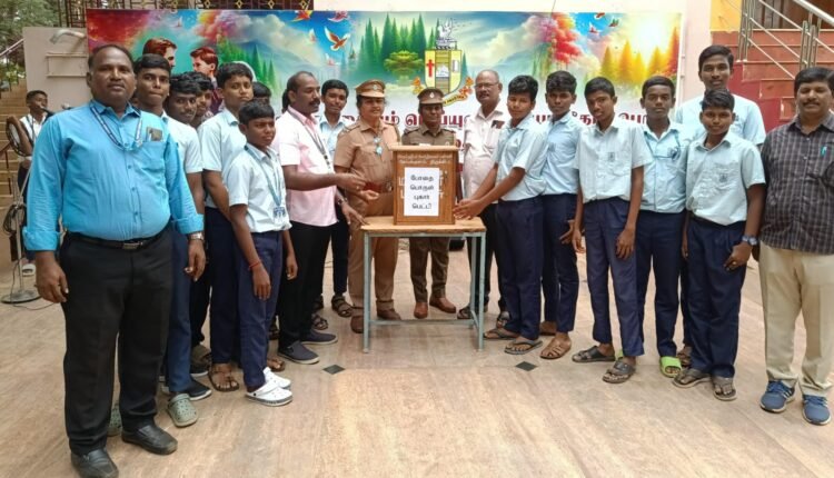 பள்ளி அளவிலான போதைப் பொருள் தடுப்புக் குழு மூலமாக மாணவர்களுக்கு போதைப்பொருள் தடுப்பு சம்மந்தமான புகார் தகவல்கள் குறித்த புகார் பெட்டி வழங்கப்பட்டு போதைப் பொருளுக்கு எதிரான உறுதிமொழி எடுக்கப்பட்டது. முதுகலை ஆசிரியர் திரு.எபினேசர் வரவேற்றார் காவல் உதவி ஆய்வாளர் திருமதி.வனிதா நன்றி கூறினார் விழிப்புணர்வு நிகழ்ச்சியில் 4000, க்கும் மேற்பட்ட பள்ளி மாணவர்கள் கலந்து கொண்டு விழிப்புணர்வு பெற்றனர்.