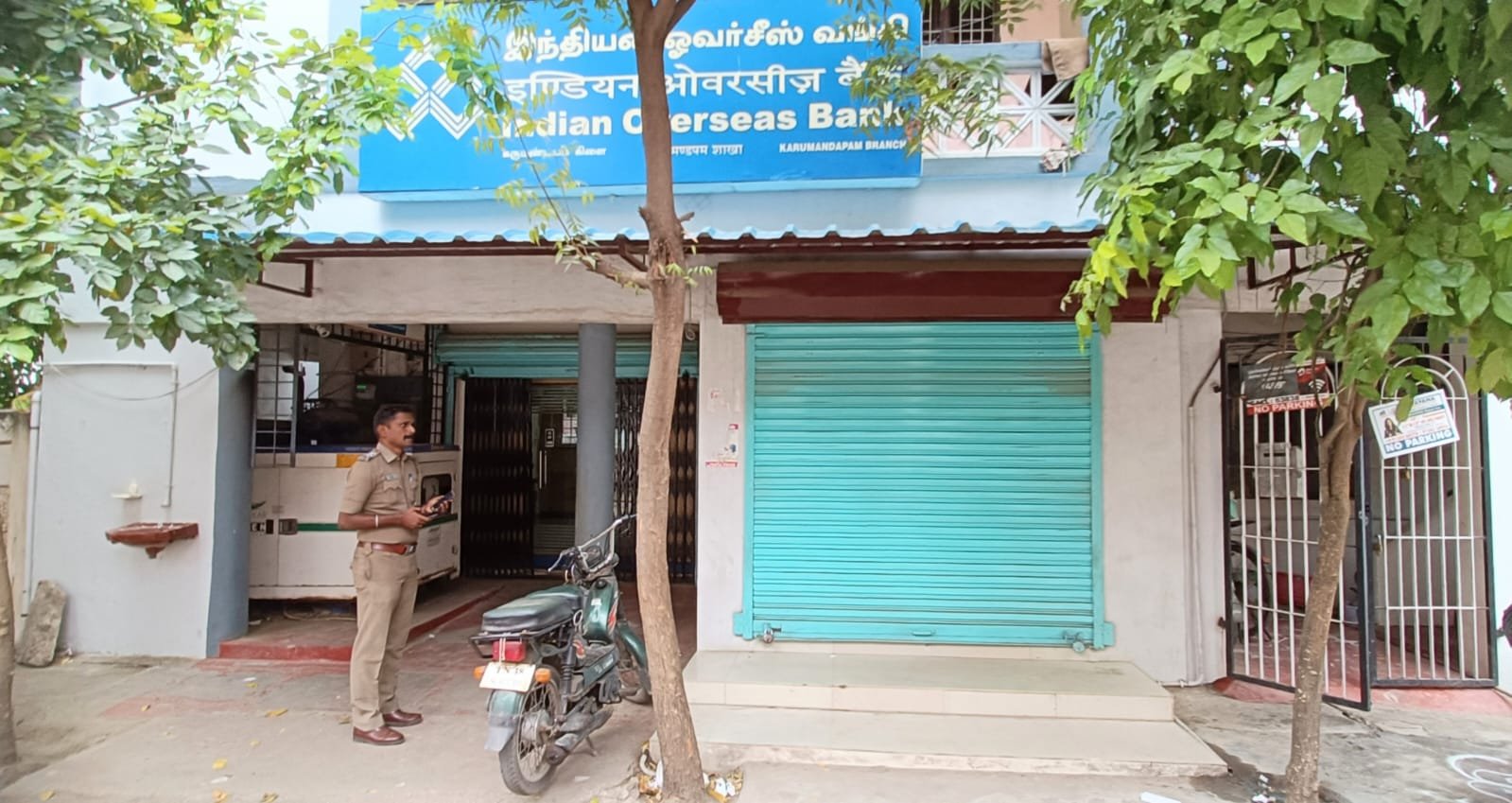 திருச்சி, திருச்சி திண்டுக்கல் சாலை கருமண்டபம் கல்யாணசுந்தரம் நகர் பகுதியில் இந்தியன் ஓவர்சீஸ் பேங்க், அதனையொட்டி ஏ.டி.எம். மையமும் அமைந்துள்ளது. இதனை அப்பகுதியில் உள்ள பொதுமக்கள், வியாபாரிகள் அதிக அளவில் பயன்படுத்தி வந்தனர். இந்த மையத்திற்கு உரிய காவலாளி நியமிக்கப்படவில்லை என்று கூறப்படுகிறது.இந்த நிலையில் 18-06-23 நள்ளிரவில் அங்கு வந்த மர்ம ஆசாமிகள் ஏ.டி.எம். மையத்திற்குள் புகுந்தனர்.