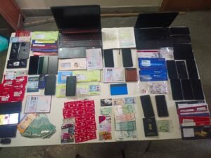 அவர்களிடமிருந்து 550, சிம் கார்டுகள் 2, லேப்டாப், 33, பேங்க் அக்கவுண்ட் பாஸ்புக், செக் புக், 20, ATM. கார்டுகள் 23, மொபைல் போன்கள் BMW .Car. Malasian Currency 5485, Ringggits, Singapore Currency. 95, Dollers. ஆகியவை பறிமுதல் செய்யப்பட்டது. விசாரணையில் மேற்படி குற்றவாளிகள் ஃபெடெக்ஸ் ஸ்கேம், டிரேடிங் ஸ்கேம், லோன் ஆஃப் ஸ்கேம் போன்ற இணைய வழி பண மோசடிகளில் பயன்படுத்துவதற்க்காக இந்த சிம்கார்டுகள் சட்டவிரோதமாக வெளிநாடுகளுக்கு அனுப்புவது தெரிய வந்தது .