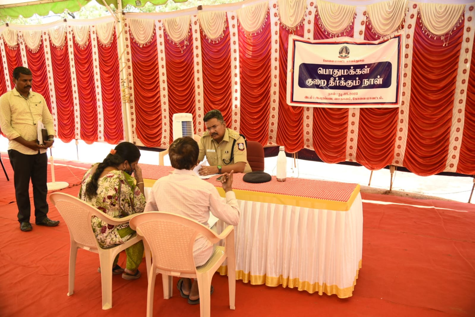 கோவை மாவட்டத்தில் காவல்துறை சார்பாக SP. பத்ரிநாராயணன் IPS.தலைமையில் மாபெரும் மக்கள் குறைதீர்க்கும் முகாம்.