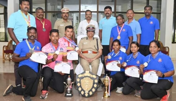 மாநில அளவில் காவல் துறையினருக்கான விளையாட்டு போட்டியில் பதக்கங்கள் வென்ற வீரர்களுக்கு திருச்சிமாநகர காவ ல் ஆணையர் காமினி IPS பாராட்டு.