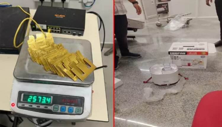 அப்போது பயணி ஒருவர் எடுத்துவந்த ஜூஸ் மிக்சருக்குள் மறைத்து கடத்தி வரப்பட்ட 2.579 கிலோ தங்கத்தை சுங்கத்துறை அதிகாரிகள் பறிமுதல் செய்தனர். இதன் மதிப்பு சுமார் ரூ.1.83 கோடி என தெரிவிக்கப்பட்டுள்ளது. மேலும் தங்கம் கடத்தல் தொடர்பாக சுங்கத்துறை அதிகாரிகள் விசாரணை நடத்தி வருகின்றனர்.