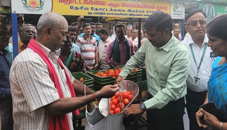 திருச்சி உழவர் சந்தையில் தக்காளி கிலோ ரூ.80 க்கு மாவட்ட ஆட்சியர் பிரதீப்குமார் விற்பனையை துவக்கி வைத்தார்