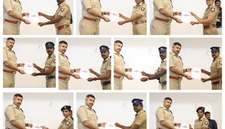 தென்காசி மாவட்டத்தில் சிறப்பாக பணியாற்றிய காவலர்களுக்கு  மாவட்ட SP.T.P.சுரேஷ்குமார், B.E., M.B.A,  நேரில் வரவழைத்து பாராட்டு சான்றிதழ் வழங்கினார்.