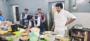 19.09.2023. செவ்வாய்க்கிழமை திருச்சி சாஸ்திரி ரோடு, சாலை ரோடு மற்றும் தில்லைநகர் பகுதியை சுற்றியுள்ள ஷவர்மா கோழிக்கறி விற்பனை செய்யும் மற்றும் அசைவ உணவு விற்பனை செய்யும் சுமார் 2, கடைகள் உணவு பாதுகாப்பு துறை மாவட்ட நியமன அலுவலர் டாக்டர். R.ரமேஷ்பாபு அவர்கள் தலைமையில் உணவு பாதுகாப்பு அலுவலர்கள் பொன்ராஜ்,செல்வராஜ், வசந்தன், இப்ராஹிம், ரெங்கநாதன், ஜஸ்டின், வடிவேல் மற்றும் அன்புச்செல்வன் கொண்ட குழுவால் ஆய்வு செய்யப்பட்டது. ஆய்வு செய்ததில் கடைகளில் கெட்டுப்போன கோழி இறைச்சி மற்றும் சமைத்த அசைவ உணவுகள் மற்றும் கெட்டுப்போன பழங்கள் சுமார் 140, கிலோ வைக்கப்பட்டிருந்தது கண்டறியப்பட்டு பறிமுதல் செய்யப்பட்டு அழிக்கப்பட்டது.