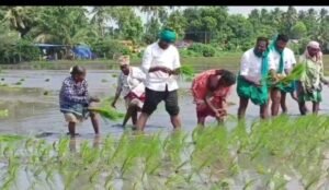 பின்னர் கருப்பூர் பகுதியில் விவசாயிகளுடன் விளை நிலத்தில் இறங்கி நாற்று நடவு செய்தார்.