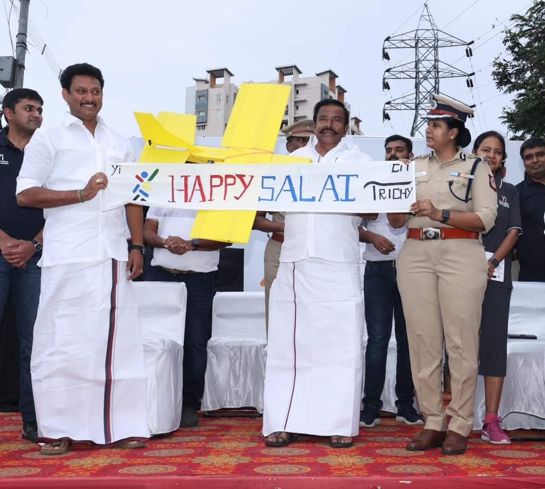 அதேபோல் திருச்சி நீதிமன்றம் அருகேயுள்ள ஸ்டுடெண்ட் சாலையில், திருச்சி மாநகராட்சி மற்றும் காவல்துறை சார்பாக ஒருங்கிணைக்கப்பட்ட Happy Salai நிகழ்ச்சியை, நகர்ப்புற வளர்ச்சி துறை அமைச்சர் கே.என்.நேரு மற்றும் பள்ளிக் கல்வித்துறை அமைச்சர் அன்பில் மகேஸ் பொய்யாமொழி மற்றும் திருச்சி மாநகர காவல் ஆணையர் திரு.சத்யபிரியா IPS. அவர்கள் மற்றும் மாநகராட்சி மேயர் திரு.அன்பழகன் மற்றும் காவல் துறை உயர் அதிகாரிகள் இணைந்து தொடங்கி வைத்தனர்.