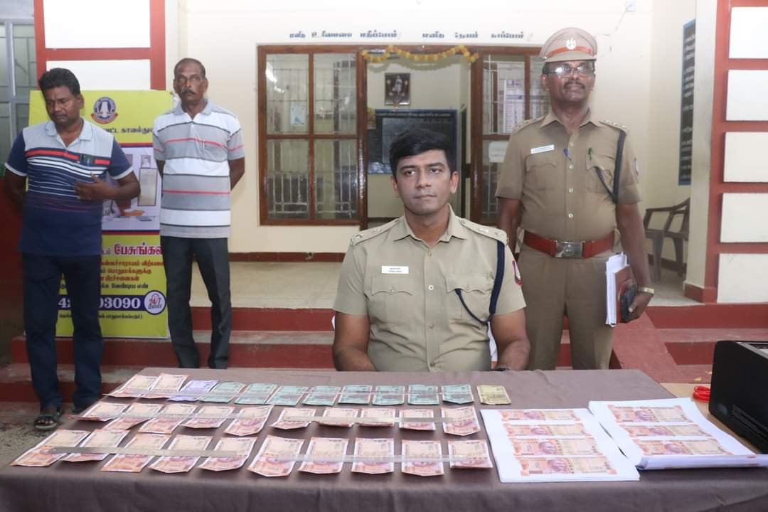 நாகப்பட்டினம் மாவட்டத்தில்  திருவிழாவில் கள்ளநோட்டு புளக்கத்தில் விட்ட நபர்கள் கைது காவல்குழுவினர் அதிரடி.