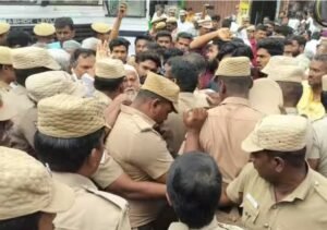 மதுரை, திருப்பரங்குன்றம் மலையின் புனிதத்தை கெடுத்து, முருகபெருமானை அவமதிக்கும் விதமாகவும், ஹிந்துக்கள் மனம் புண்படும் விதமாகவும் தடையை மீறி சமபந்தி விருந்து கொடுக்க தடையை மீறி வந்த இஸ்லாமியர்களை போலீசார் தடுத்து நிறுத்தினர். போலீசாருடன் வாக்குவாதம் செய்த அவர்கள் பிறகு கலைந்து சென்றனர்.
