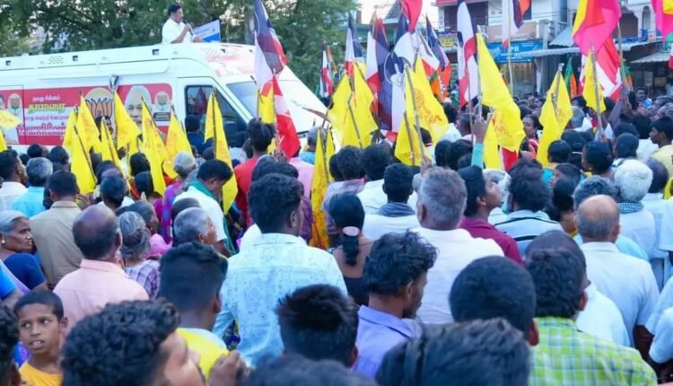 அப்போது கட்சியின் பொதுச்செயலா ளர் ஜெயசீலன், முதன்மை அமைப்பு செயலாளர் எஸ்.எஸ். வெங்கடேசன், முதன்மை செயலாளர் சத்தியநாதன், கரூர் மாவட்ட தலைவர் பிரகாஷ் கண்ணா, மாவட்ட செயலாளர் விநா யகா பிச்சை, பா.ஜனதா மாநில மக ளிர் அணி தலைவி மீனா வினோத்கு மார், தமிழ் தேச கட்சியின் கரூர் மாவட்ட செயலாளர் அருள் மற்றும் கூட்டணி கட்சி நிர்வாகிகள், பொதுமக் கள் உள்பட பலர் கலந்து கொண்ட னர்.