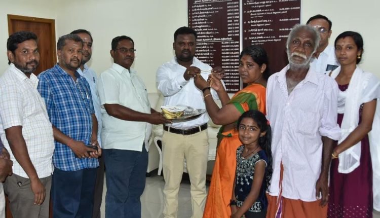 பழனிமுருகன் கோவில் உண்டியலில் 1-3/4 பவுன் தங்க சங்கிலியை தவரவிட்ட சங்கீதா பதிலாக தங்க சங்கிலியை கொடுத்த குழுதலைவர் மணிமாறன்