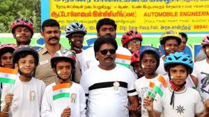 77வது சுதந்திரதினவிழாவை முன்னிட்டு தேசிய கொடியேற்றி மாணவர்கள் விழிப்புணர்வு ஸ்கேட்டிங் பேரணி.