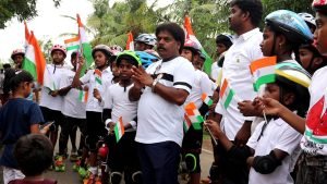 பேரணியின் போது 50,க்கும் மேற்பட்ட ரோலர் ஸ்கேட்டிங் வீரர்கள் கையில் தேசிய கொடியை ஏந்தி வந்தே மாதரம் என கோஷமிட்டு வந்தனர்.