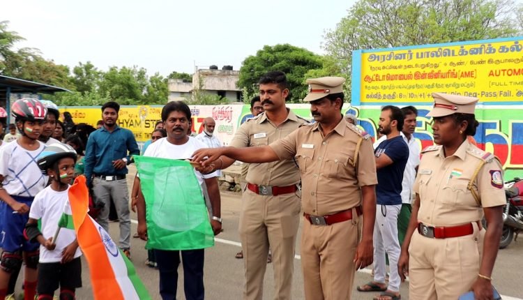 77வது சுதந்திரதினவிழாவை முன்னிட்டு தேசிய கொடியேற்றி மாணவர்கள் விழிப்புணர்வு ஸ்கேட்டிங் பேரணி.