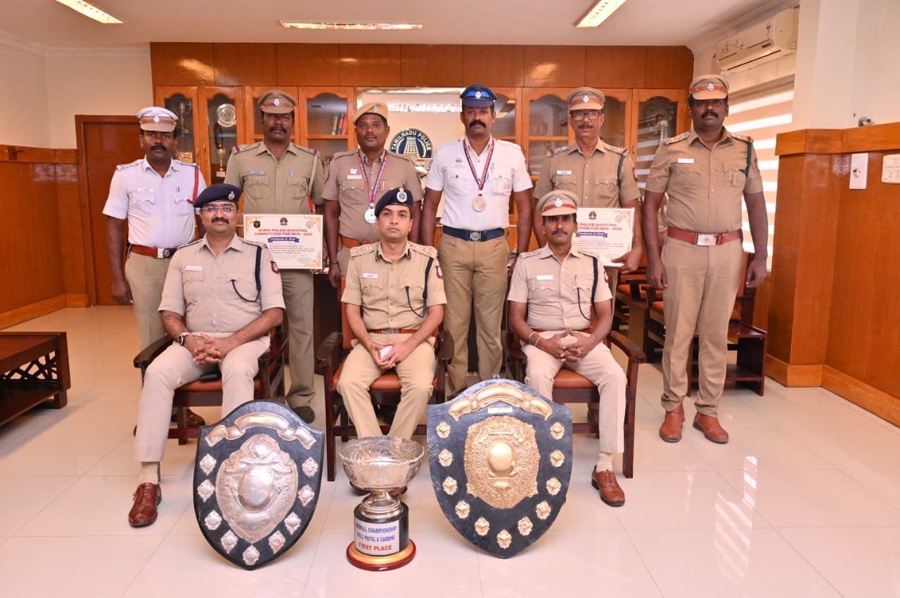 மாநில அளவிலான துப்பாக்கி சுடும் போட்டியில் பதக்கம் வென்ற காவல் துறையினரை நேரில் அழைத்து பாராட்டிய நெல்லை மாநகர காவல் ஆணையர்