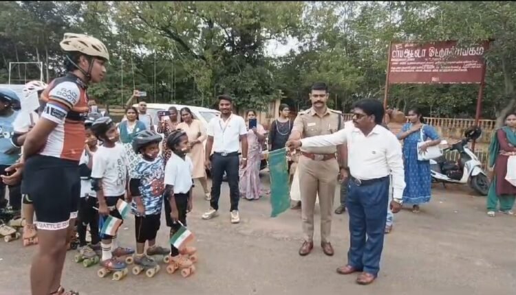 78 வது சுதந்திர தினத்தை முன்னிட்டு செவன் ஸ்டார் ஸ்போர்ட்ஸ் அகாடமி சார்பில் மாணவர்களின் போதை பொருள் ஒழிப்பு விழிப்புணர்வு ஸ்கேட்டிங் பேரணி DSP. அறிவழகன் துவக்கி வைத்தார்.