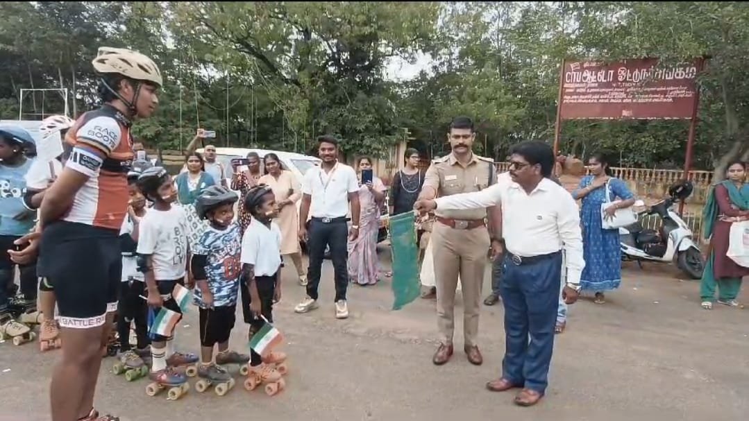 78 வது சுதந்திர தினத்தை முன்னிட்டு செவன் ஸ்டார் ஸ்போர்ட்ஸ் அகாடமி சார்பில் மாணவர்களின் போதை பொருள் ஒழிப்பு விழிப்புணர்வு ஸ்கேட்டிங் பேரணி DSP. அறிவழகன் துவக்கி வைத்தார்