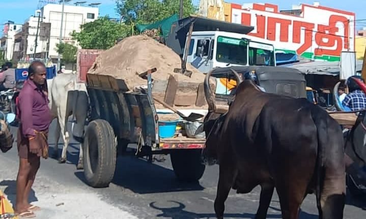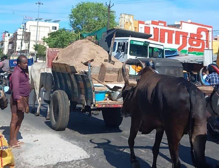 இதற்கு நடவடிக்கையாக போக்குவரத்து நெரிசலான இந்தகாலை மாலைவேளைகளில் நகருக்குள் மணல் மாட்டுவண்டியை அனுமதிக்காமல் நடவடிக்கை மேற்க்கொள்ளவேண்டும் காலை 8:00 மணி முதல் 10:00 மணி வரை மாநகருக்குள் இந்த மணல் வாகனங்கள் வர தடை விதிக்க வேண்டும் இல்லையென்றால் வாகனங்கள் போக்குவரத்து பெருகி இந்த மாட்டு வண்டிகளால் போக்குவரத்திற்க்கும் மக்களுக்கும் தொல்லை தான் விபத்துகளும் அடிக்கடி ஏற்படுகிறது .