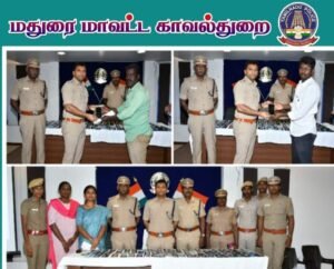 மதுரை மாவட்ட காவல் கண்காணிப்பாளர் திரு.R.சிவபிரசாத்,IPS., அவர்கள் உத்தரவின் பேரில் மதுரை மாவட்டத்தில் உள்ள காவல் நிலையங்களில் பதிவான தொலைந்து போன மொபைல் போன்; சம்பந்தமான புகார்களில் கடந்த இரு மாதங்களில் மதுரை மாவட்ட சைபர் கிரைம் காவல் நிலையம் மூலம் ரூபாய் 16,65,200/- மதிப்புள்ள 100, மொபைல் போன்கள் கண்டுபிடிக்கப்பட்டு மதுரை மாவட்ட காவல் கண்காணிப்பாளர் திரு. சிவபிரசாத், IPS., அவர்களால் 11.10.2023-ந் தேதி உரிய நபர்களிடம் வழங்கப்பட்டது.
