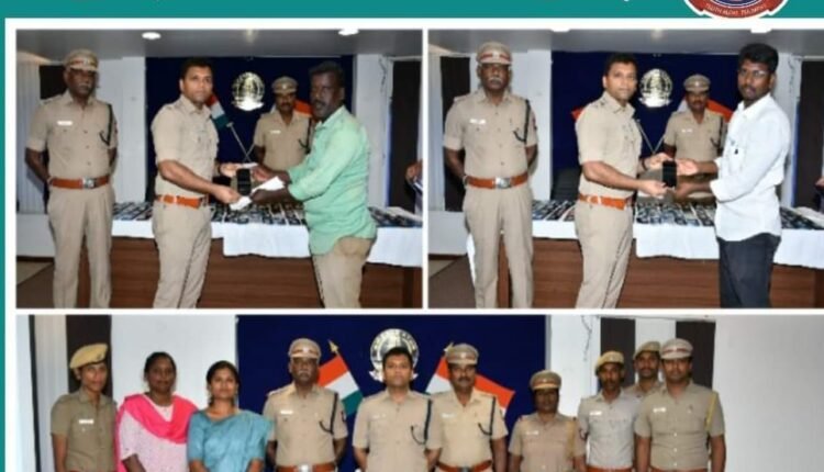 மதுரை மாவட்டத்தில் 1கோடியே 75 லட்சம் மதிப்பிலான செல்போன்கள் கண்டுபிடித்து உரியவர்களிடம் ஒப்படைத்த காவல்துறையினர் SP.R.சிவபிரசாத்IPS. பாராட்டு.