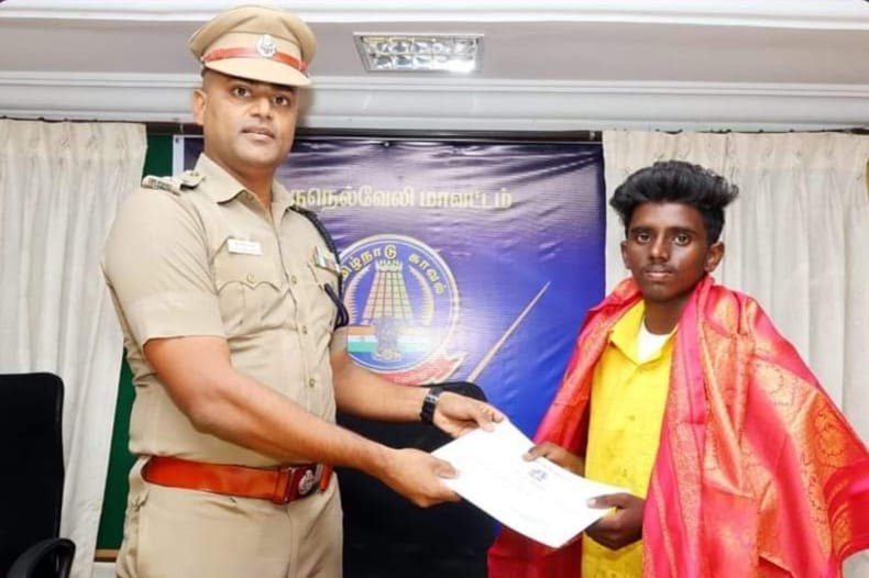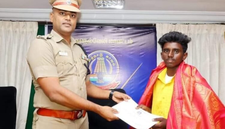 திருநெல்வேலி ATM மில் தவறவிட்ட பணத்தை நேர்மையாககாவல்நிலையத்தில் ஒப்படைத்த மாணவருக்கு மாவட்ட SP.சிலம்பரன் பாராட்டு.