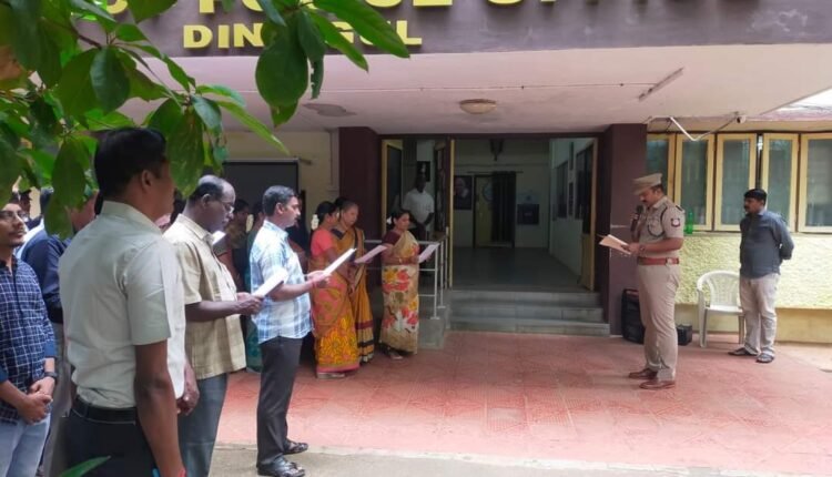 திண்டுக்கல் மாவட்டகாவல்துறை ஊழல் தடுப்பு உறுதிமொழி ஏற்பு SP.V.பாஸ்கரன் தலைம.