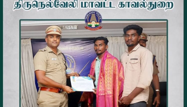 ATM -ல் தவறவிட்ட ரூபாய் 2,10,000/- பணத்தை நேர்மையாக காவல் நிலையத்தில் ஒப்படைத்த நபரை பாராட்டிய திருநெலவேலி மாவட்ட SP. சிலம்பரசன்
