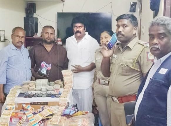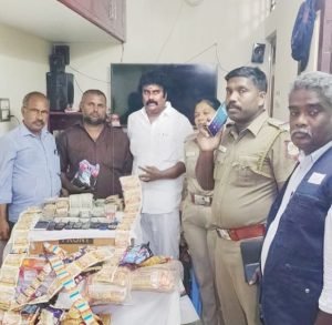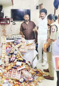 உணவு பாதுகாப்பு துறை மாவட்ட நியமன அலுவலர் டாக்டர். ஆர். ரமேஷ்பாபு அவர்கள் தலைமையில் உணவு பாதுகாப்பு அலுவலர்கள் கொண்ட குழுவால் அவரது வீட்டில் ஆய்வு செய்தபோது சுமார் 56 கிலோ புகையிலை பொருட்களும் 9 கைபேசியும், ரூபாய் 6,57,320/- ரொக்கம் மற்றும் கடைக்கு அன்பளிப்பு கொடுப்பதற்காக 227 கிராம் வெள்ளி நாணயங்களும் பறிமுதல் செய்யப்பட்டு மேல்நடவடிக்கைக்காக ஸ்ரீரங்கம் சரககாவல் உதவி ஆணையர் . நிவேதாலட்சுமி மற்றும் கோட்டை ஆய்வாளர் திரு. தயாளன் அவர்களிடம் ஒப்படைக்கப்பட்டனர்.