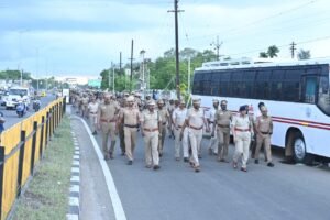 மேலும், தொடர்ந்து உறையூர் காவல்நிலைய சரகத்தில் நடைபெற்ற கொடி அணி வகுப்பினை திருச்சி மாநகர காவல் ஆணையர் முன்னின்று நடத்தி சென்றார்கள். இக்கொடி அணி வகுப்பானது, உறையூர் காவல்நிலையத்தில் தொடங்கி, பாண்டமங்கலம் அரசமரத்தடி, பணிக்கன் தெரு, நாடார் தெரு, டாக்கர் ரோடு, நாச்சியார் கோயில் சந்திப்பு வழியாக மீண்டும் உறையூர் காவல்நிலையத்தில் முடிவுற்றது. இதில் காவல்துணை ஆணையர்கள், கூடுதல் துணை ஆணையர், மாநகர ஆயுதப்படை, ஸ்ரீரங்கம் மற்றும் தில்லைநகர் சரக உதவி ஆணையர்கள், காவல் ஆய்வாளர்கள், தமிழ்நாடு சிறப்பு காவல்படை, மாநகர ஆயுதப்படை மற்றும் சட்டம் ஒழுங்கு காவல்துறையினர் உட்பட 300, காவல் துறையினர் கலந்து கொண்டனர்.