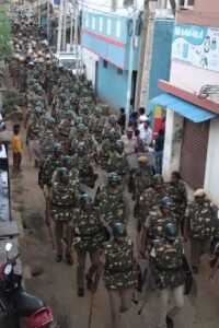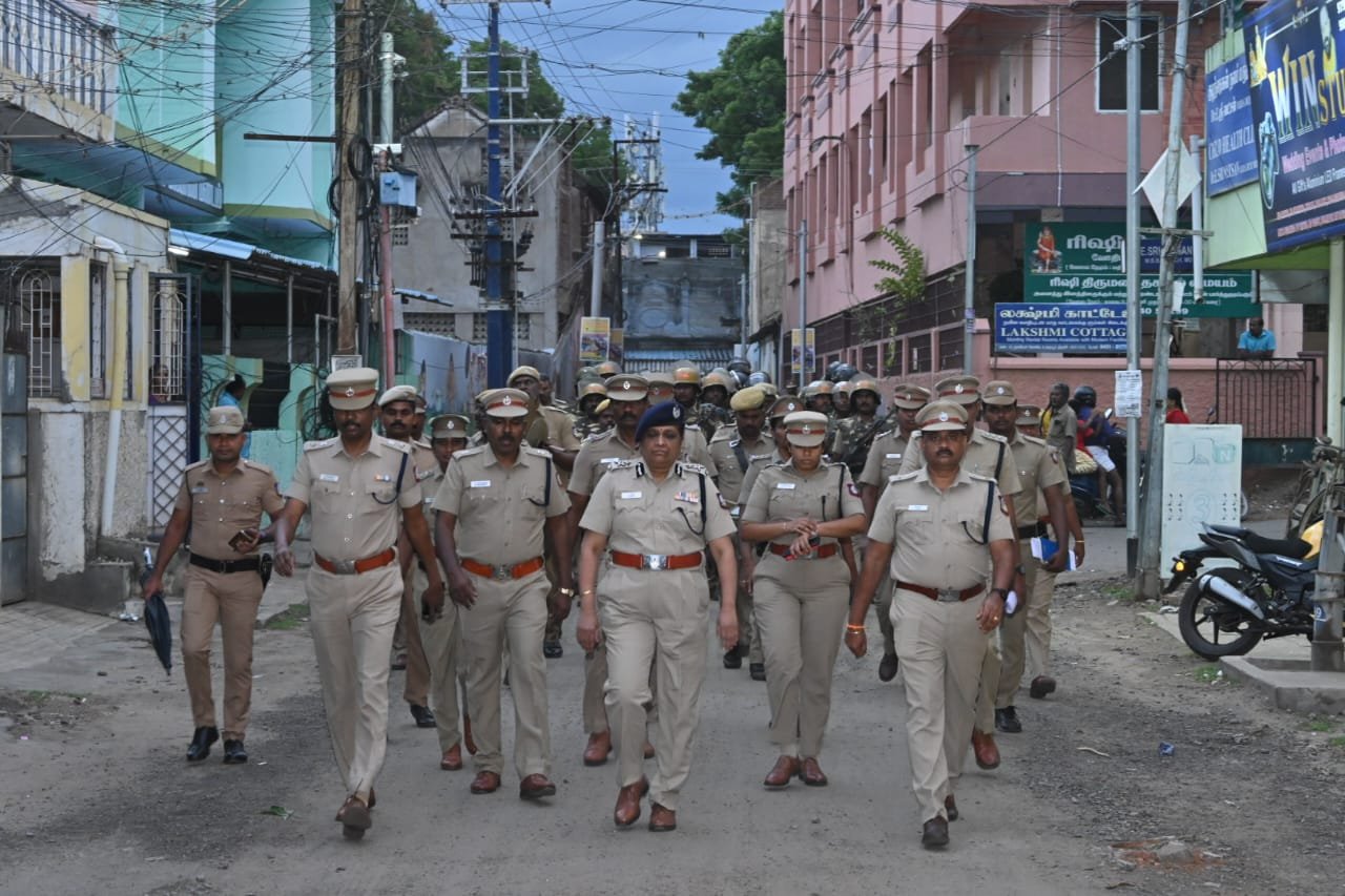 இதில், அரியமங்கலம் காவல்நிலைய சரகத்தில் நடைபெற்ற கொடி அணி வகுப்பினை திருச்சி மாநகர காவல் ஆணையர் திருமதி.N.காமினி, IPS, அவர்கள், SIT கல்லூரியிலிருந்து தொடங்கி வைத்து முன்னின்று நடத்தி சென்றார்கள், கொடி அணி வகுப்பானது காமராஜ் நகர் முத்துமாரியம்மன் கோவில், ராஜ வீதியில் உள்ள 22, தெருக்கள், GT நாயுடு தெரு வழியாக தஞ்சை மெயின் ரோட்டிற்கு வந்து ஆயில் மில் செக் போஸ்ட் வழியாக பிரகாஷ் மஹாலில் முடிவுற்றது. இதில் காவல்துணை ஆணையர் (தெற்கு), கூடுதல் துணை ஆணையர், மாநகர ஆயுதப்படை, பொன்மலை உதவி ஆணையர்கள், காவல் ஆய்வாளர்கள், தமிழ்நாடு சிறப்பு காவல்படை, மாநகர ஆயுதப்படை மற்றும் சட்டம் ஒழுங்கு காவல்துறையினர் உட்பட 300,காவல் துறையினர் கலந்து கொண்டனர்.