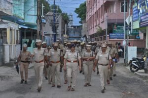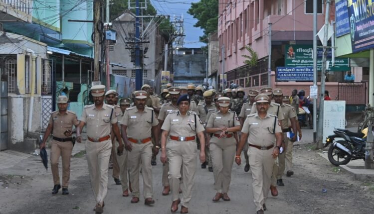 திருச்சி மாநகரத்தில் விநாயகர் சிலை விசர்ஜன ஊர்வலம் வருகின்ற 20.09.2023-ம் தேதியன்று நடைபெற உள்ளது. இவ்விழாவினை பொதுமக்கள் பாதுகாப்புடனும், சட்டம் ஒழுங்கு பிரச்சனை ஏற்படா வண்ணமும் கொண்டாடும் வகையில் திருச்சி மாநகர காவல்துறையினரால் 18.09.23-ந் தேதி கொடி அணி வகுப்பு நடைபெற்றது.